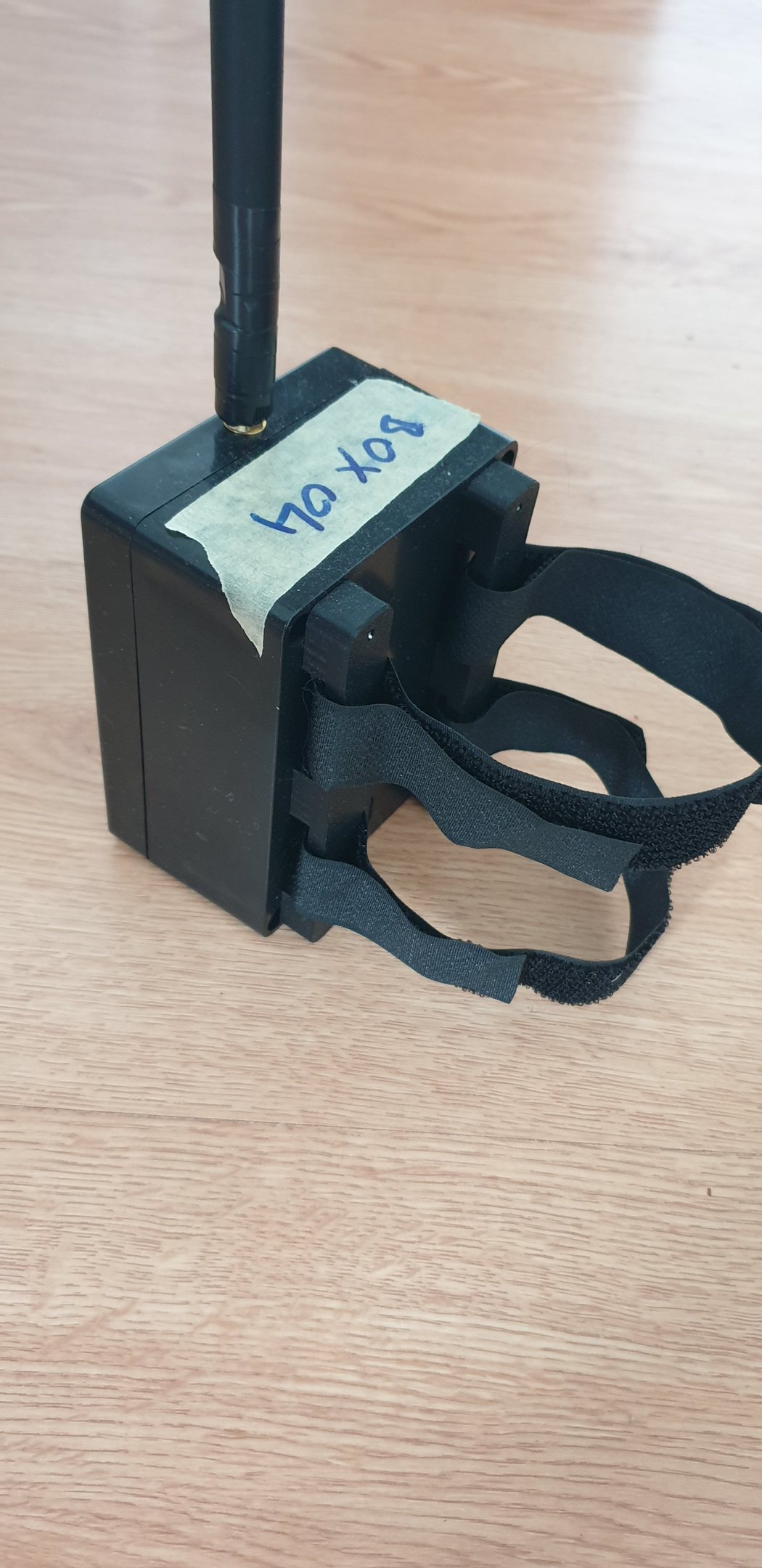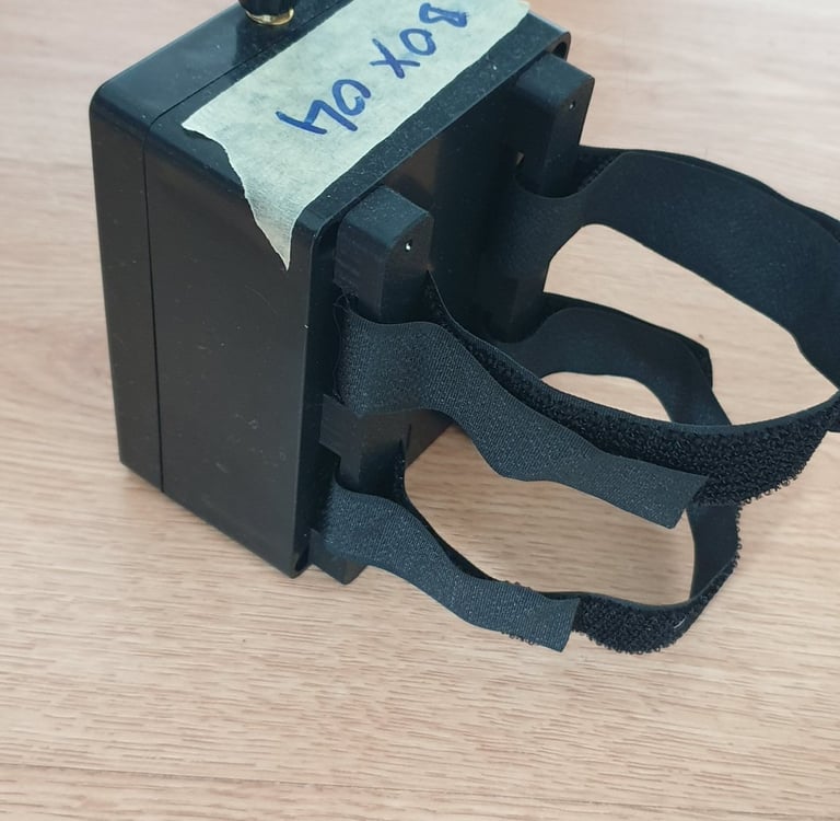 The box has holes for mounting screws, which can be used, attach holders for velcro straps.