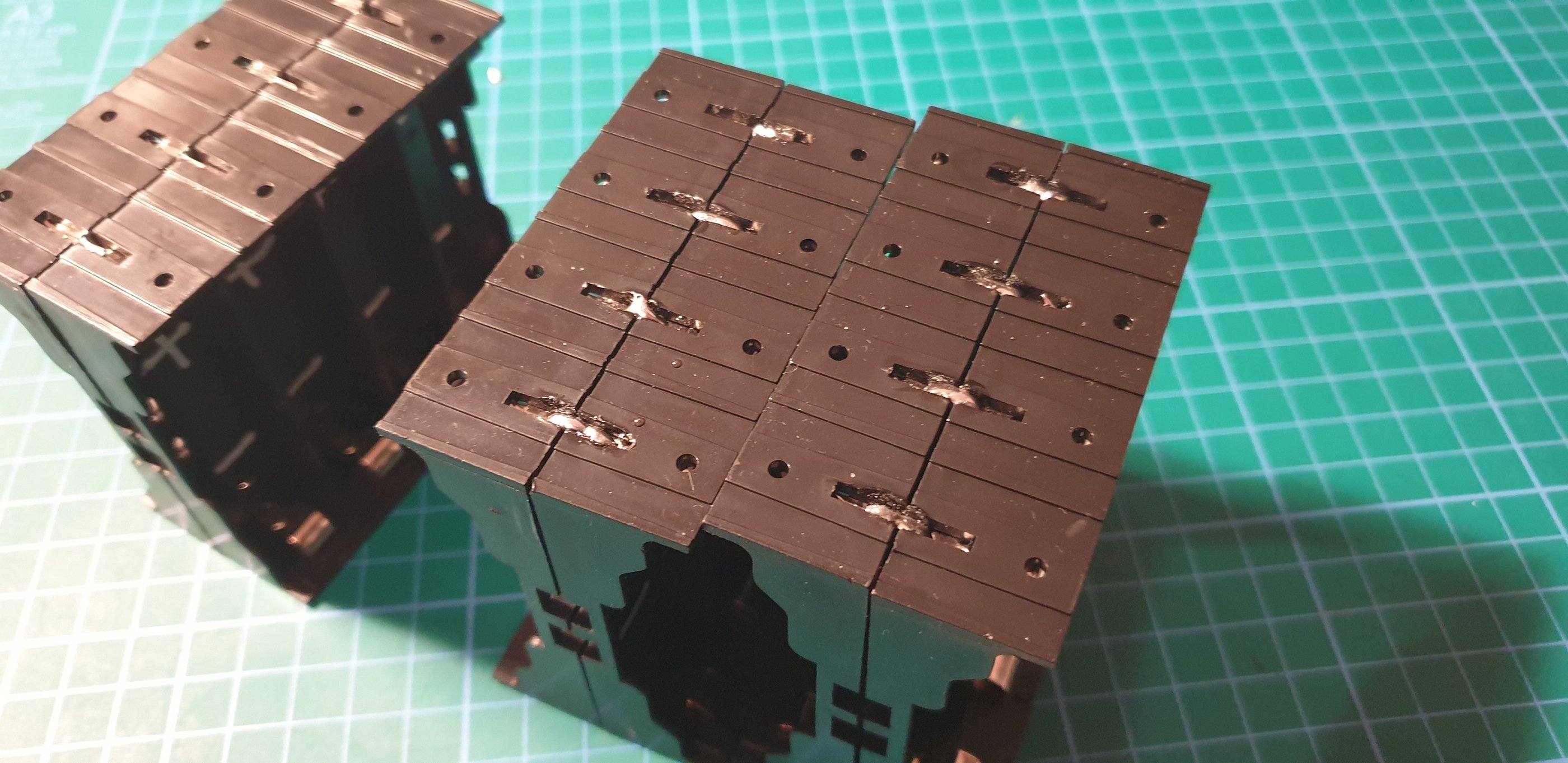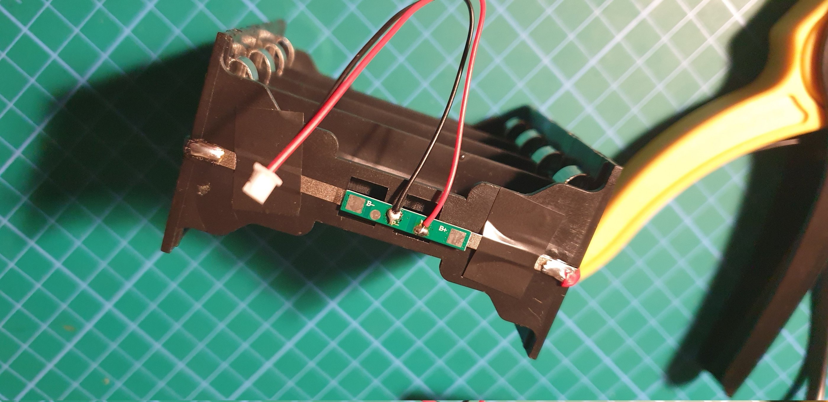 After soldering the two holders together, check all connections with a multimeter.