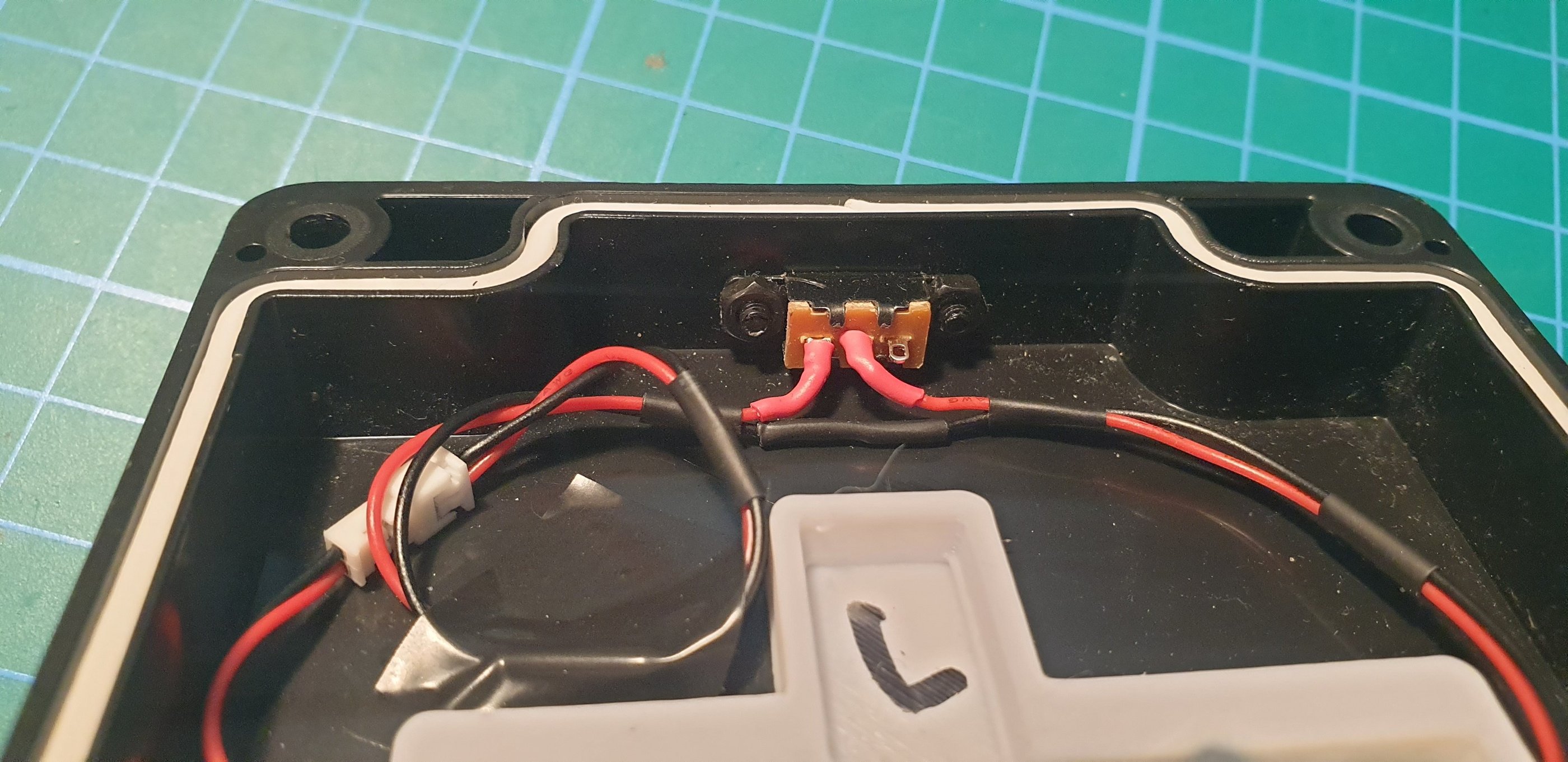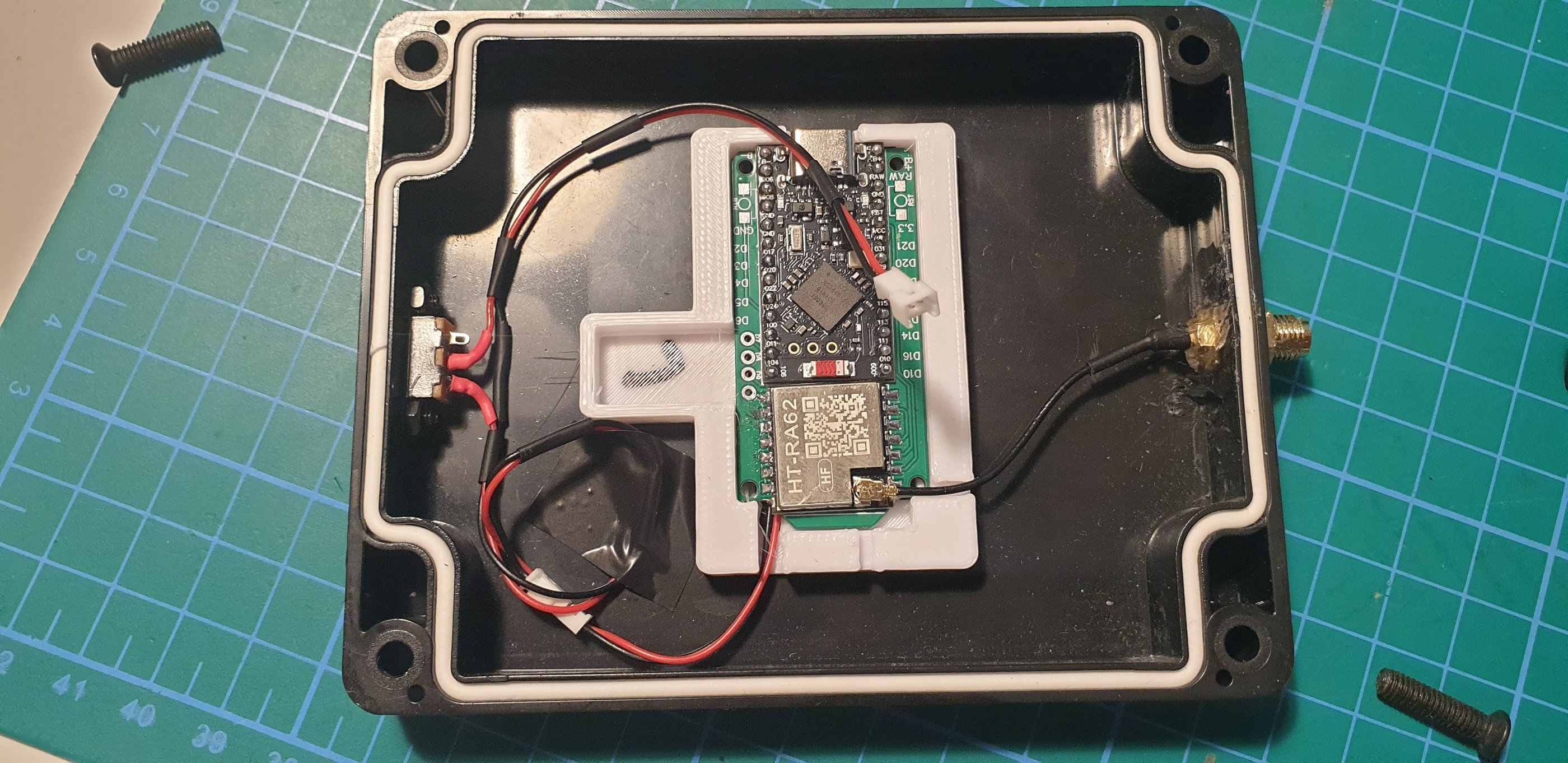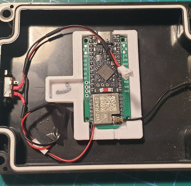 The components are installed. The 3D part is attached to the enclosure using double-sided tape.