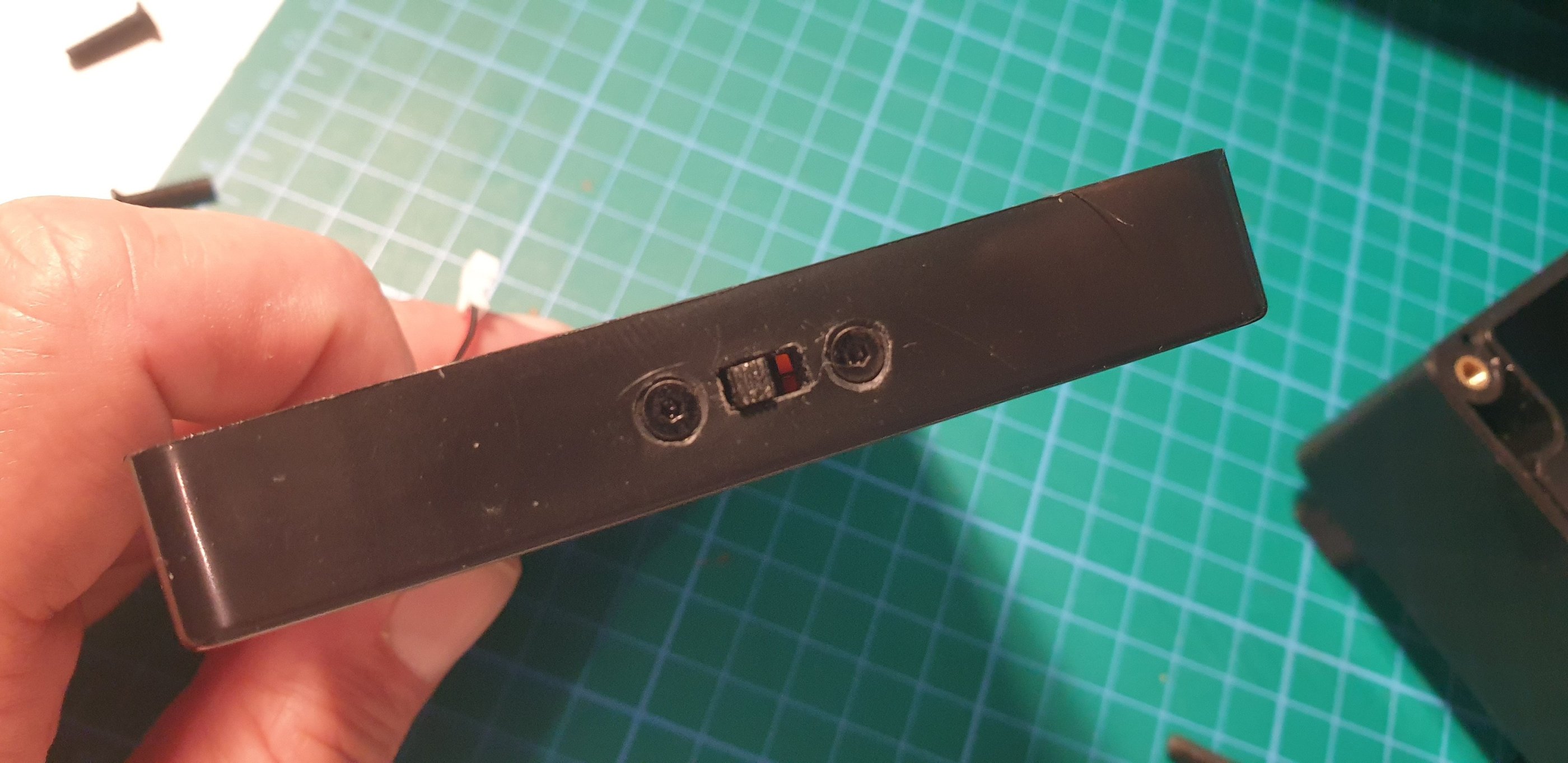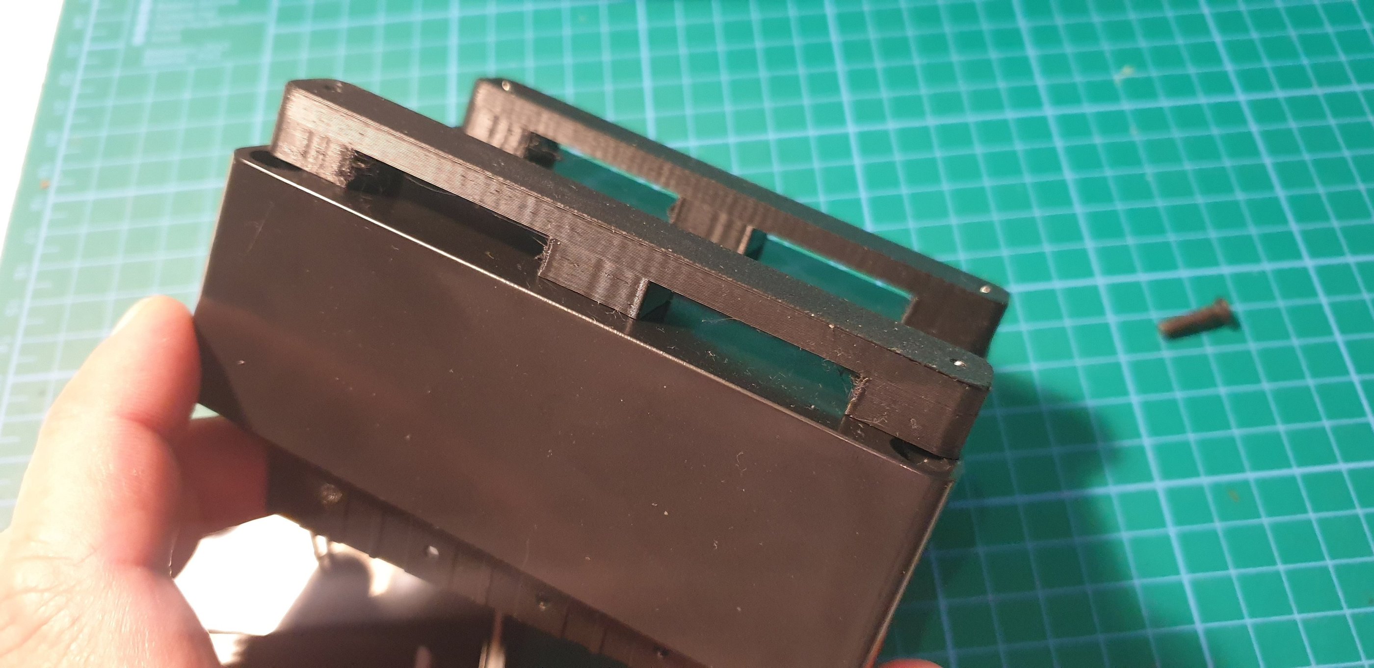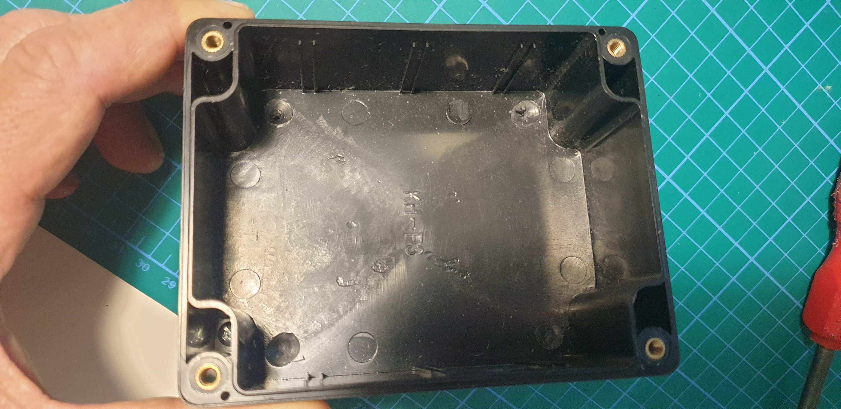 The components are installed. The 3D part is attached to the enclosure using double-sided tape.
