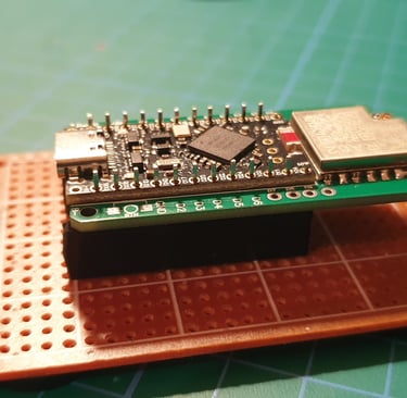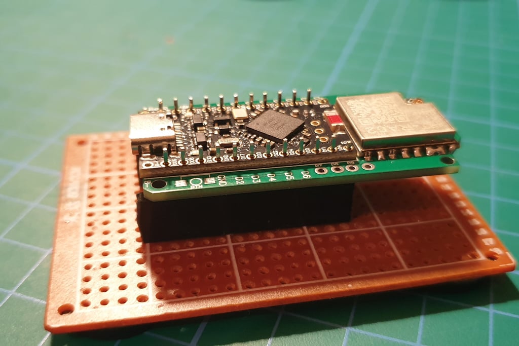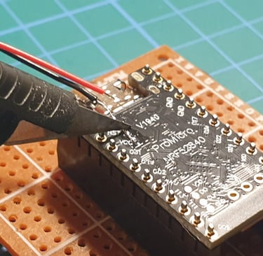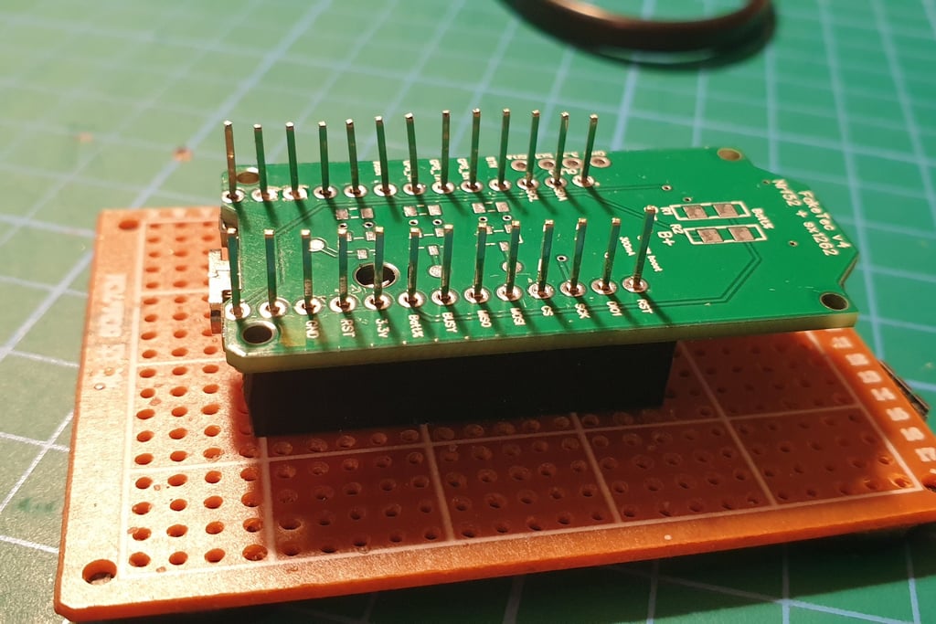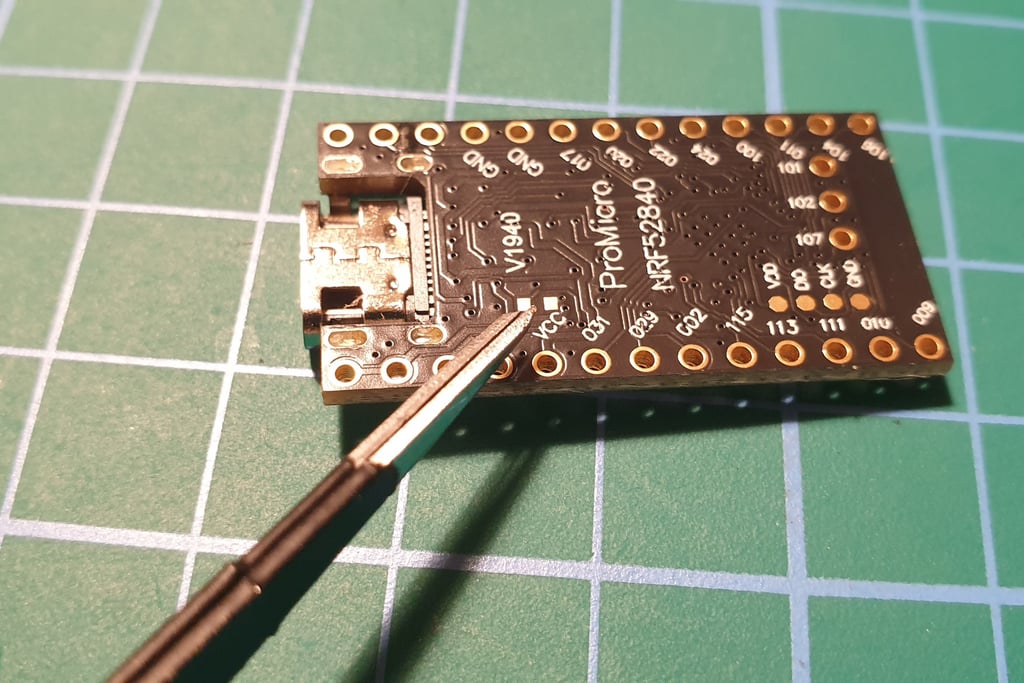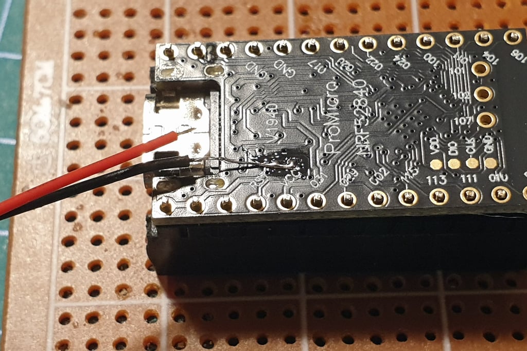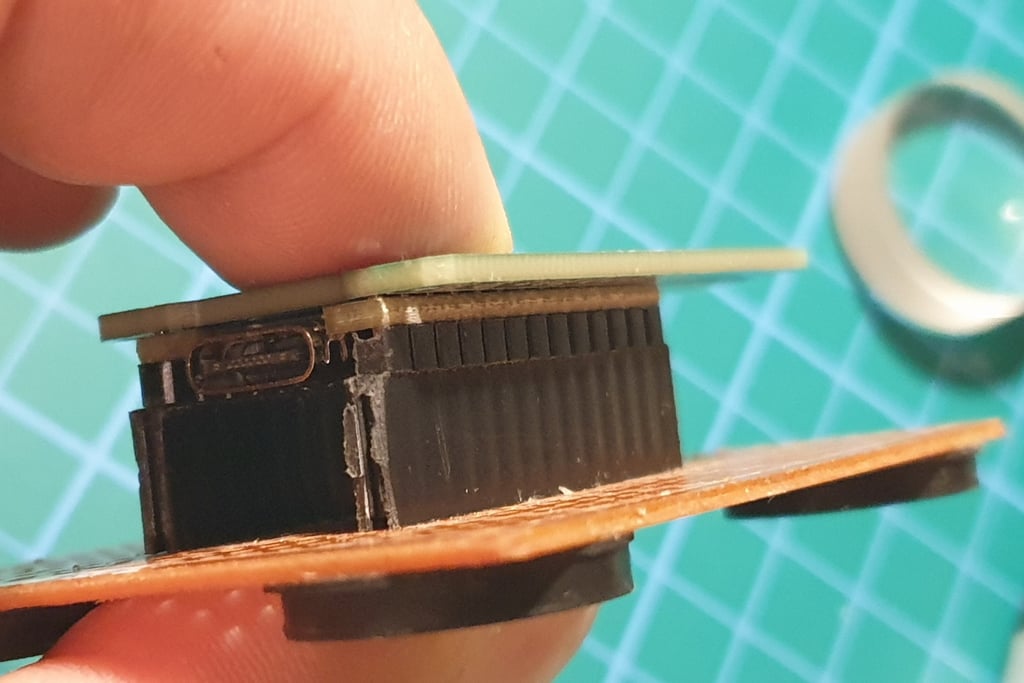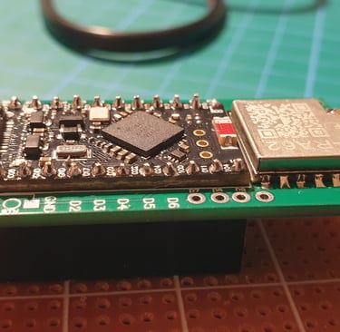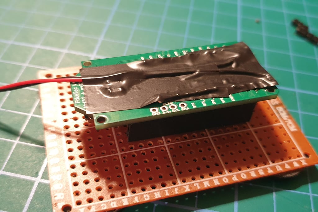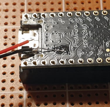 The next step is to connect the Pro Micro and Faketec board. I made a holder that helps position the boards correctly and makes soldering easier.