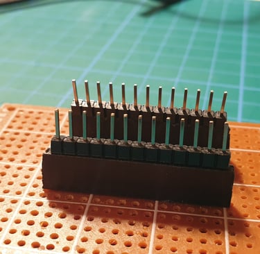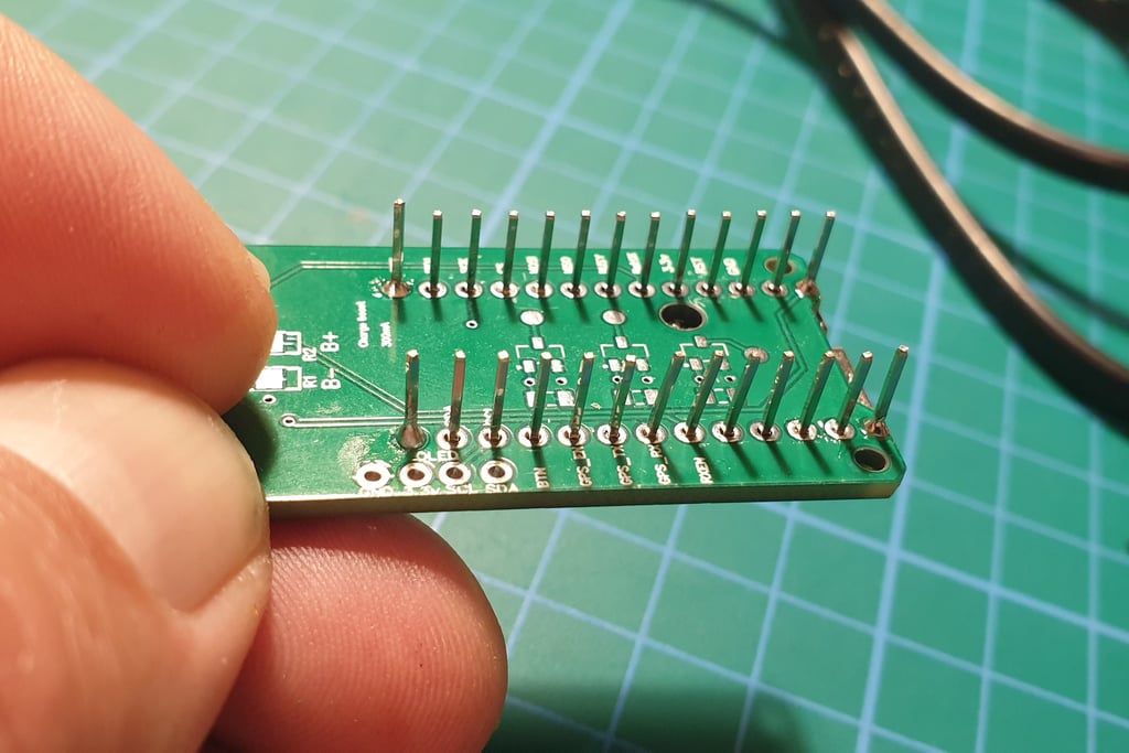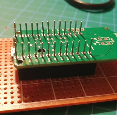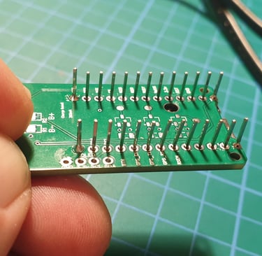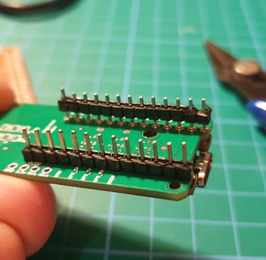 Press the end pins so they sitk out about 1 mm above the board. You don’t have to do this, but I like the board to have a low profile, as it makes later installation in the enclosure easier.