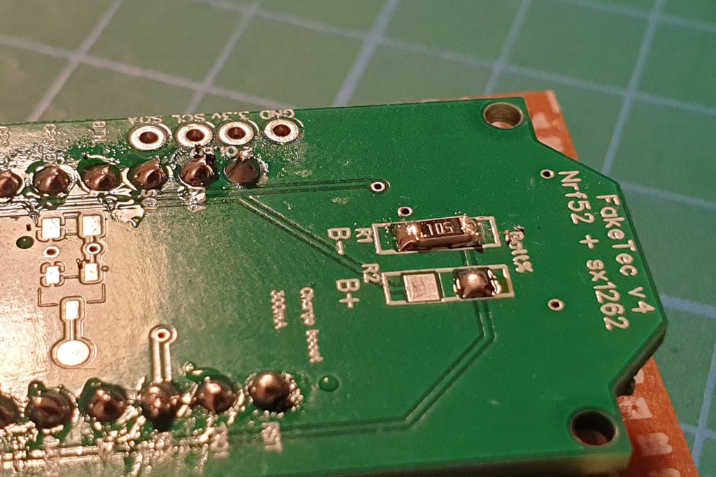 Let’s move on to the next part: installing R1 and R2. They are not strictly required, but they are useful. Thanks to them, the application will display the correct voltage, which is especially helpful for battery-powered nodes.