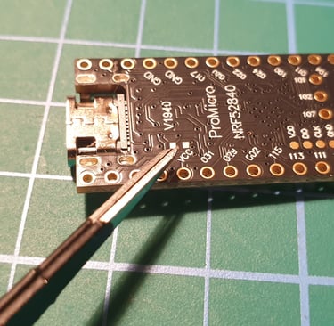 The Pro Micro board has the option to charge the battery at two current levels: 100 mA or 300 mA. To enable the higher charging current, you need to solder together two small pads on the bottom side of the board.