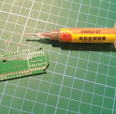 While the plate is heating up, apply solder paste to the pads underneath the LORA module.