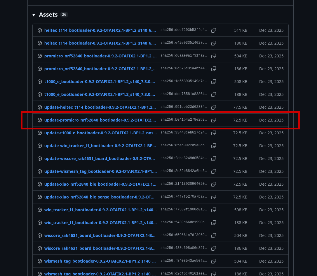 la actualización de otras placas con NRF52840 puede variar un poco. Recuerda descargar el bootloader adecuado para tu placa)