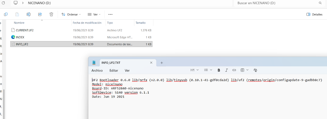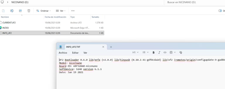 Abriendo el archivo info uf2 podemos ver los datos de la versión del bootloader que tenemos actualmente