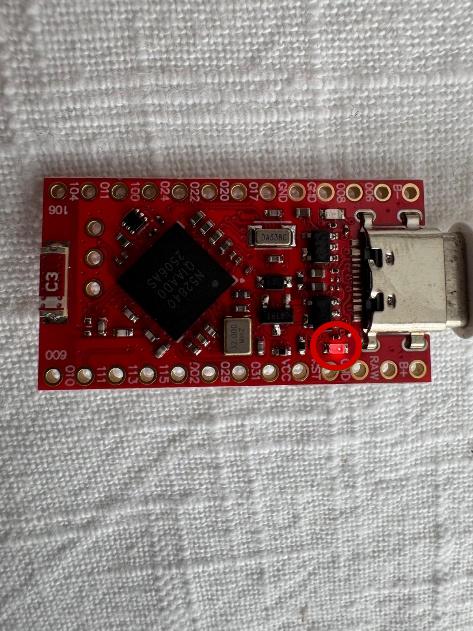 Cuando entre en modo DFU, el chip enciende el led rojo y parpadea muy lentamente. Además, se monta como una nueva unidad en el ordenador. Normalmente lo llama “Nicenano”