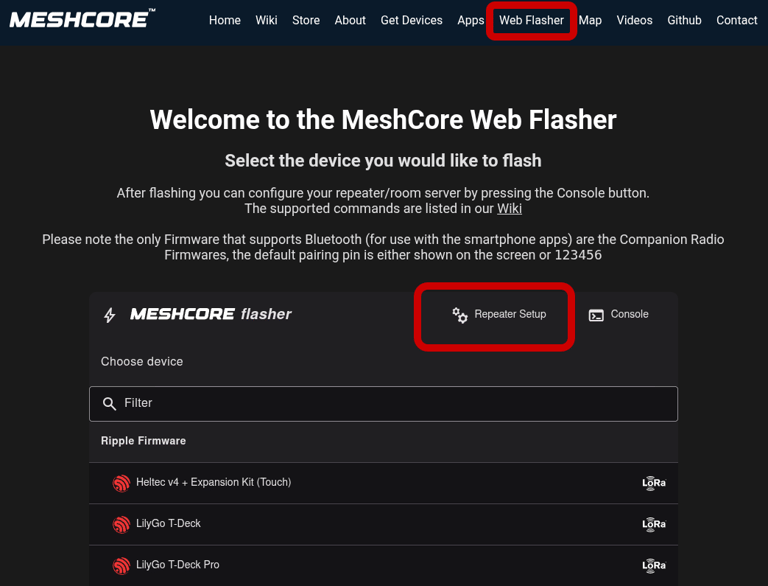 after you flash your board on web flasher, select tab "repeater setup" and than "Connect"