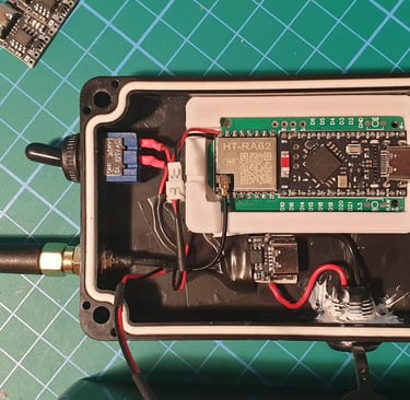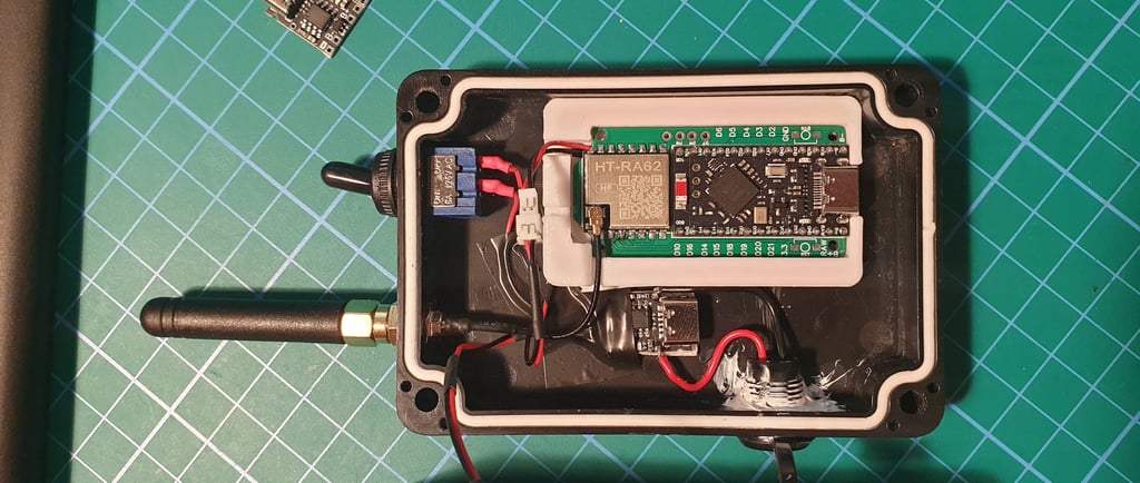 All internal components has been field-tested over the past few weeks in outdoor conditions (in the 3D-printed version). The main change is the use of a standard IP67 enclosure, which allows for faster replication. The number of 3D-printed elements has been reduced.